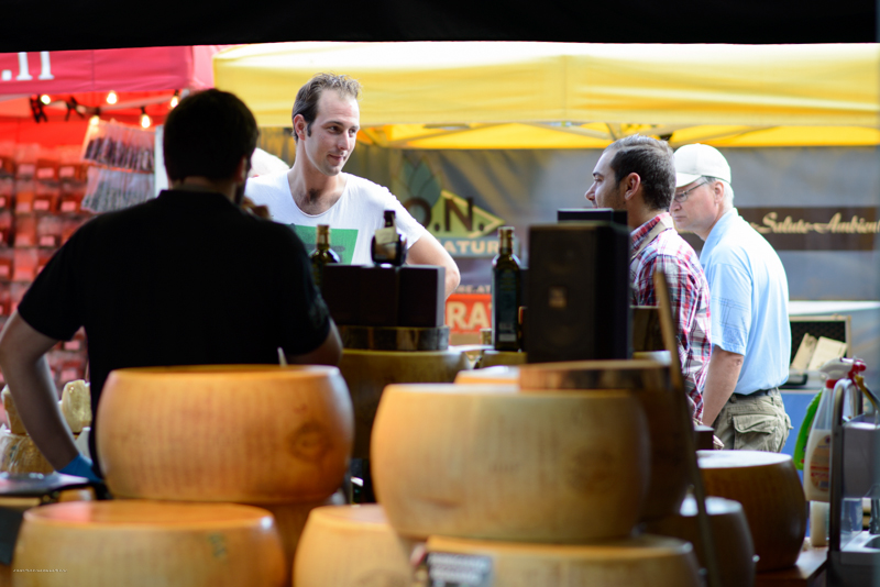 Kampin Narinkkatorilla pidettiin ”kansainväliset markkinat” 8.-11.8.2013. Pitihän sinne mennä, vaikka juuri edellisenä viikonloppuna oli käyty ”maalaismarkkinoilla” Hakaniemessä. No, myöntää täytyy, että nämä jälkimmäiset hulinat olivat kansainvälisemmät kuin mitä edellisen viikonlopun hulinat ”maalaiset”. Tosin molemmissa oli osittain samoja myyjiä: makkaranpaistajat ja Italian parmankinkun myyjät olivat tuttuja jo edelliseltä viikolta. Se jotenkin pisti silmään, että Italia oli yliedustettuna näillä markkinoille: Italiaa buffaavia telttoja oli neljä tai viisi. Tarjontaa löytyi niin italialaisen kinkun, kuin juuston ja öljynkin osalta. Toiseksi vahvimmin (pl. Suomi) paikalla oli ehkä Viro ja Saarenmaa. Sieltäkin löytyi niin makkaraa kuin juustoa.