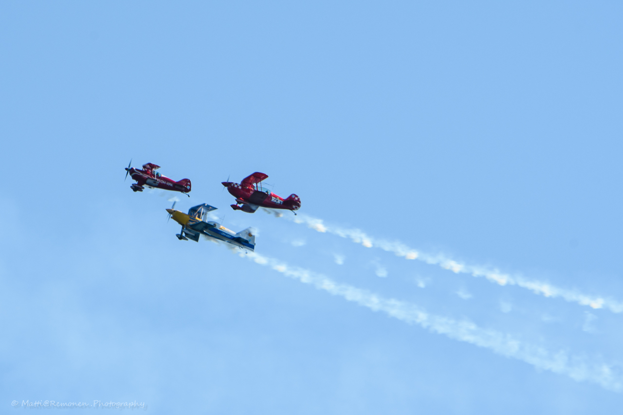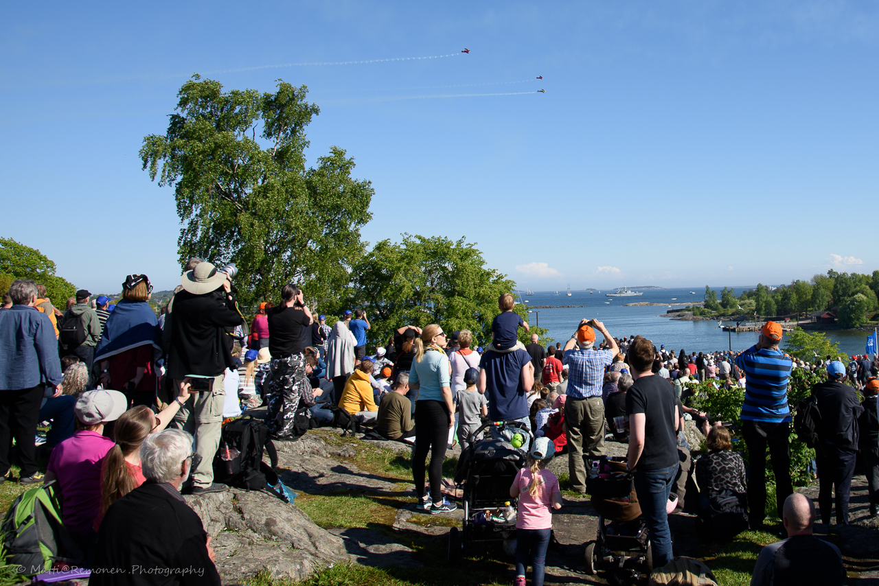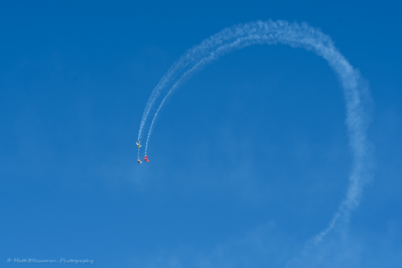 Lopuksi olikin sitten enää kotimaiset jäljellä: F/A-18 Hornet ja Midnight Hawks-taitolentoryhmä. Hornetti veti myös siihen malliin, kuin lentopetrooli olisi menossa pois muodista. Shellin mies Helsinki-Vantaalla kiitti taas. ”Tankki täyteen ja puhdistetaan itikat tuulilasista, kiitos”. Midnight Hawks veti myös tasaisen varman shown, mutta valitettavasti Red Arrowsin jälkeen tuo ei oikein enää saanut minua hurmioon. Pitää kuitenkin muistaa, että Britit tekevät tuota työkseen ja Midnight Hawks ”harrastuksena”.