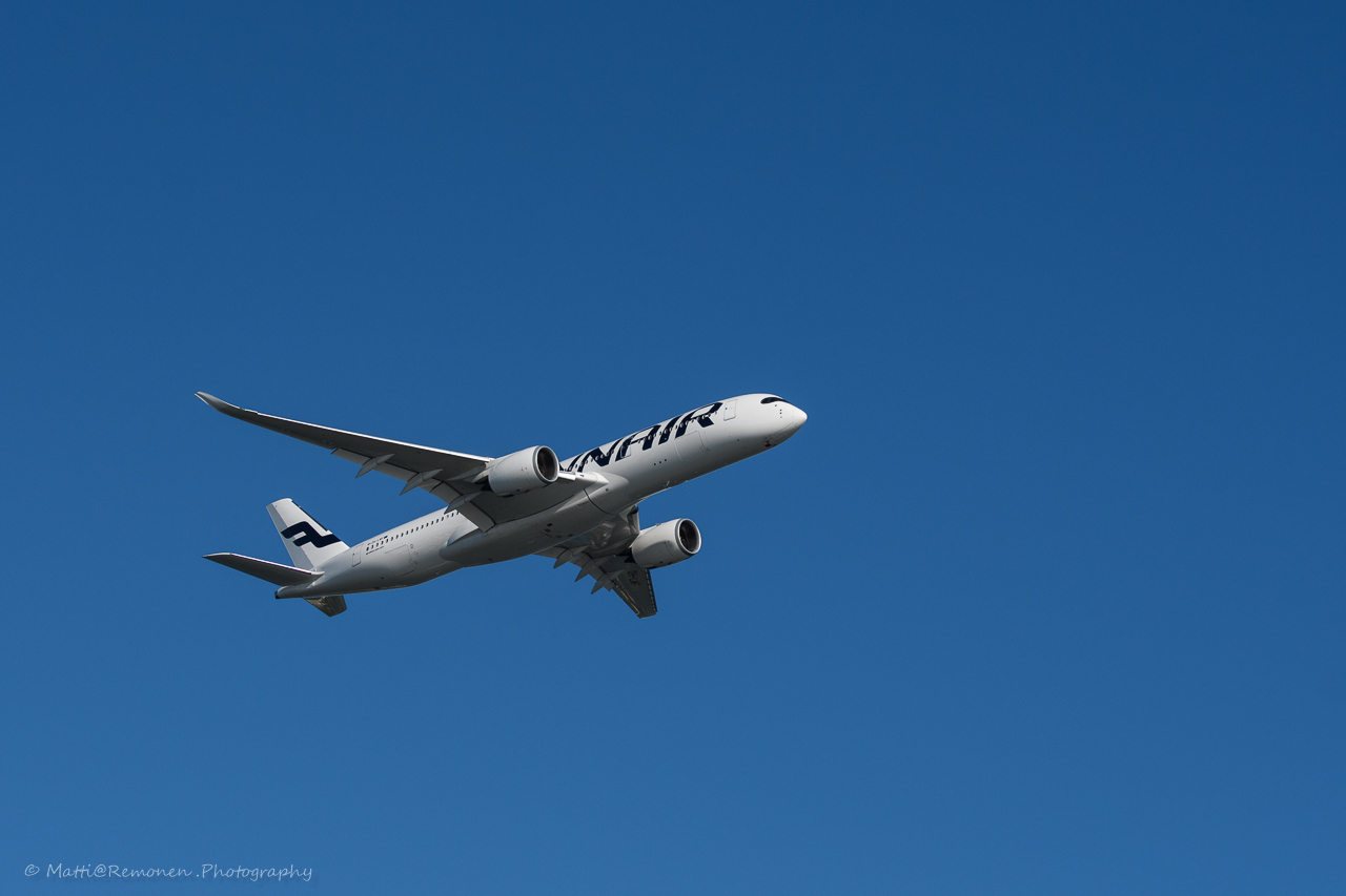 Potkurivehkeistä kun oli päästy eroon, vuorossa oli hieman nykyaikaisempaa kalustoa. Ensin paikalle saapui Finnairin ihka-uusi Airbus A350, joka suoritti arvokkaan ylilennon. Täytyy kyllä sanoa, että noiden nykyisten jättien moottorit ovat todella hiljaiset ainakin noin tyhjäkäynnillä ajeltaessa.