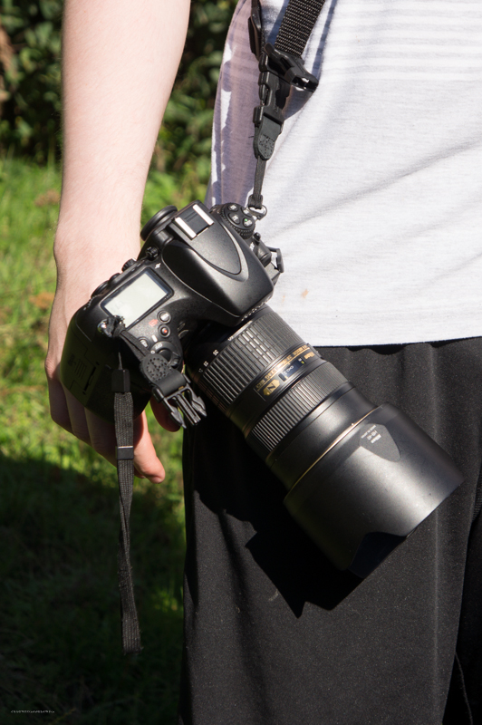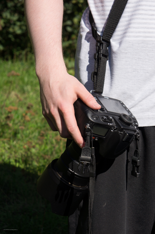 Viimeistään Nyrokin reissulla totesin sen, että D800E:n + 24-70/2.8G -kombon raahaaminen kymmenen tuntia päivässä kädestä roikottaen on sellainen kokemus, jota ei halua toistaa. Onhan minulla tietysti kamerassa hihnakin, mutta normihihna ei oikein mahdollista kovin nopeaa kuvaustilanteisiin reagoimista eikä se oikein pysy olkapään varassakaan. Jos hihnan taas laittaa pään yli niin, että se kulkee rinnan yli ristiin, ei kuvaamisesta tule sitäkään vähää. No, ikuisena kalustor…, siis valokuvausta laitteiden kautta harrastavana päätin ratkaista tämänkin ongelman hankkimalla jonkin kivan kikottimen. Periaatteessa tiesin mitä haluan, Google translatorin mukaan tarvitsin rintareppu hihnan, mutta itse ajattelin toisella kotimaisella hankkia sling strapin.