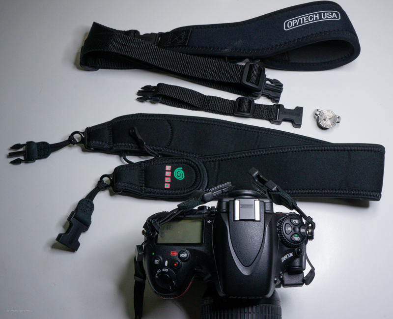 Katselin netistä eri vaihtoehtoja ja päädyin kokeilemaan Op/Techin modulaarista ratkaisua. Minulla on ollut joskus Op/Techin kamerahihna, taisi olla -90 -luvun alussa Nikonin F801:ssä, mutta se meni kameran mukana. Jossain välissä tuli sitten hankittua Op/Techin jalustahihna, jota ajattelinkin nyt hyödyntää olkatoppauksen osalta. Sitä varten tilasin Maitolaiturilta(!) vain Op/Tech Sling Strap-liittimet sekä impulssiostoksena Uni Adaptor/Loop-liittimet, joissa tulee jatkohihnanpätkät ja ylimääräiset Loop-liittimet, vaikkei kummallekaan näyttänyt olevan käyttöä. Tämä sitten osoittautuikin myöhemmin viisaaksi päätökseksi.