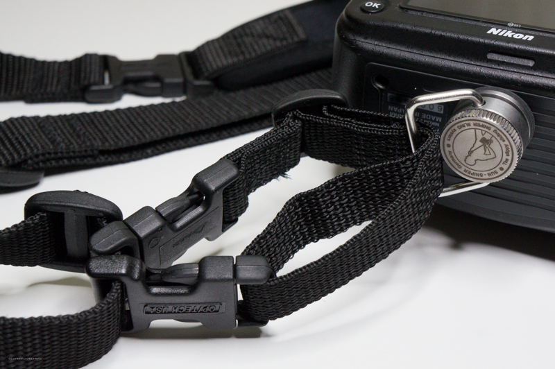 Op/Techin Sling Strap-filosofia lähtee siitä, että kameran omiin hihnakiinnikkeisiin laitetaan nuo Loop-osat, jotka sitten pikaliittimellä laitetaan varsinaiseen hihnaan. Tässä piileekin Op/Techin ehkä huonoin puoli: käyttöergonomialta paras kiinnike olisi kameran oikeanpuoleinen lenkki, mutta jos kameran laittaa siitä kiinni, pystykuvaus ei käytännössä onnistu, jos kuvaa pystystä niin, että laukaisunappi on ylinnä. No, kameran voi laittaa myös vasemmalta kiinni, mutta se ei ehkä ole yhtä kätevästi käsillä.