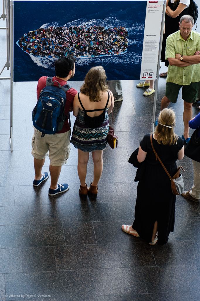 Nii-joo, itseäni eniten kosketti kuva pakolaisista jossain keskellä Välimerta täyteen ahdetussa veneessä. Sininen vene sinisellä merellä täynnä värikkäitä pilkkuja. Ja jokainen pilkku on ihminen ja oma kohtalonsa. Se jotenkin kertoi ja kosketti enemmän kuin jotkut pakolaisleireillä otetut resupekkakuvat.