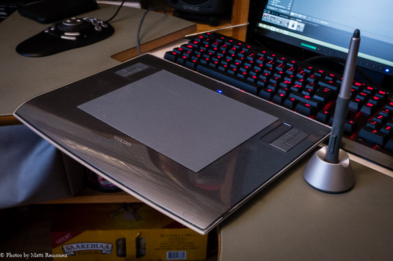 Näinhän se menee, vanhallekin koiralle voi opettaa uusia temppuja. Tai myös vanhoja temppuja, jos niin on tarvis. No, tälle vanhalle koiralle uusvanha temppu oli siirtyä käyttämään piirtopöytää kuvien editoimisessa. Mulla on ollut A5-kokoinen Wacomin Intuos -tabletti jo ajalta ennen buurisotia… siis viisi vuotta tai jotain sinne päin. Alussa koitin sitä käyttää, mutta homma ei oikein luonnistunut. Aika-ajoin netistä sai lukea piirtopöydän hehkutusta ja pari kertaa olen päässyt katsomaan, kun kuvien käsittelyn ammattilainen käyttää näppäimistöä ja piirtopöytää juohevasti kuvien tuotannossa. Nyt päätin sitten vielä kerran antaa piirtopöydälle ja itselleni mahdollisuuden kohdata. Otin pöydän (? levyn?, ennen puhuttiin tabletista) kaveriksi videoeditissä aikanaan käyttämäni ShuttlePro 2-ohjaimen ja konffasin molemmat tukemaan omaa työnkulkuani. Ja katso! Hommahan tuntuu toimivan. Jos ei nyt vielä aivan lentämällä, niin kuitenkin vähän kuin kolmijalkainen poni suossa. Kivireki perässä.